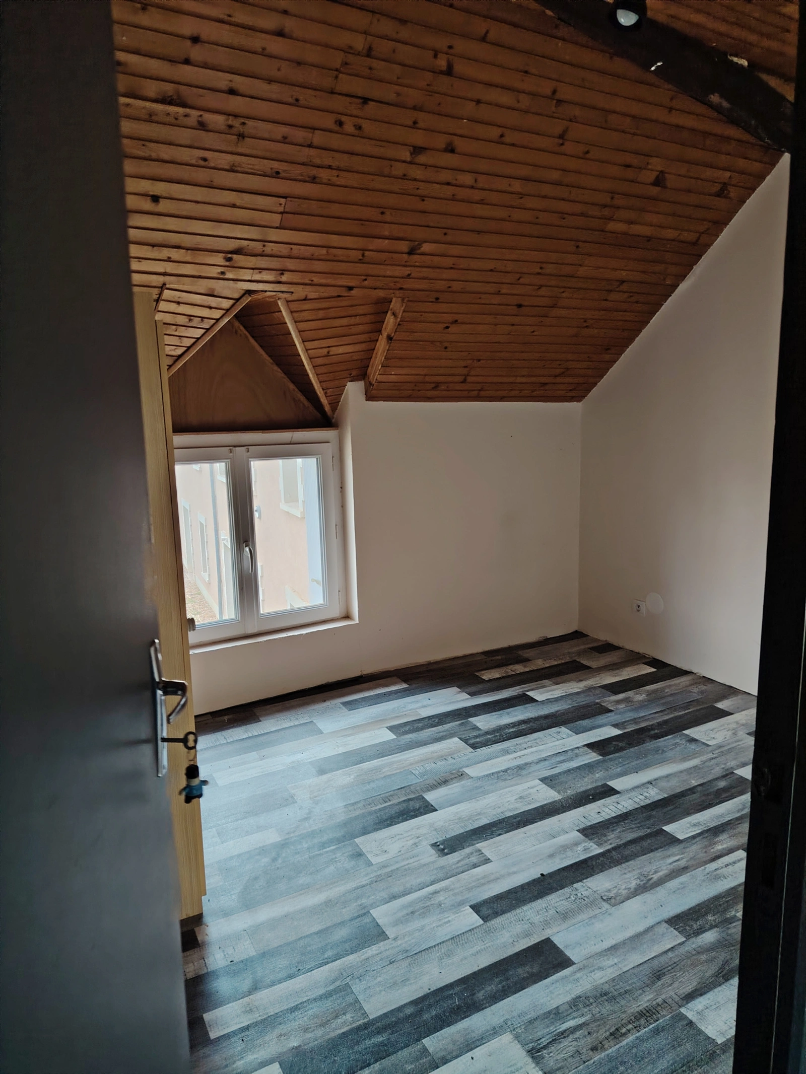 Trois espaces distincts comprenant quatre chambres mansardées, chacune avec point d'eau / lavabo, et toilettes.