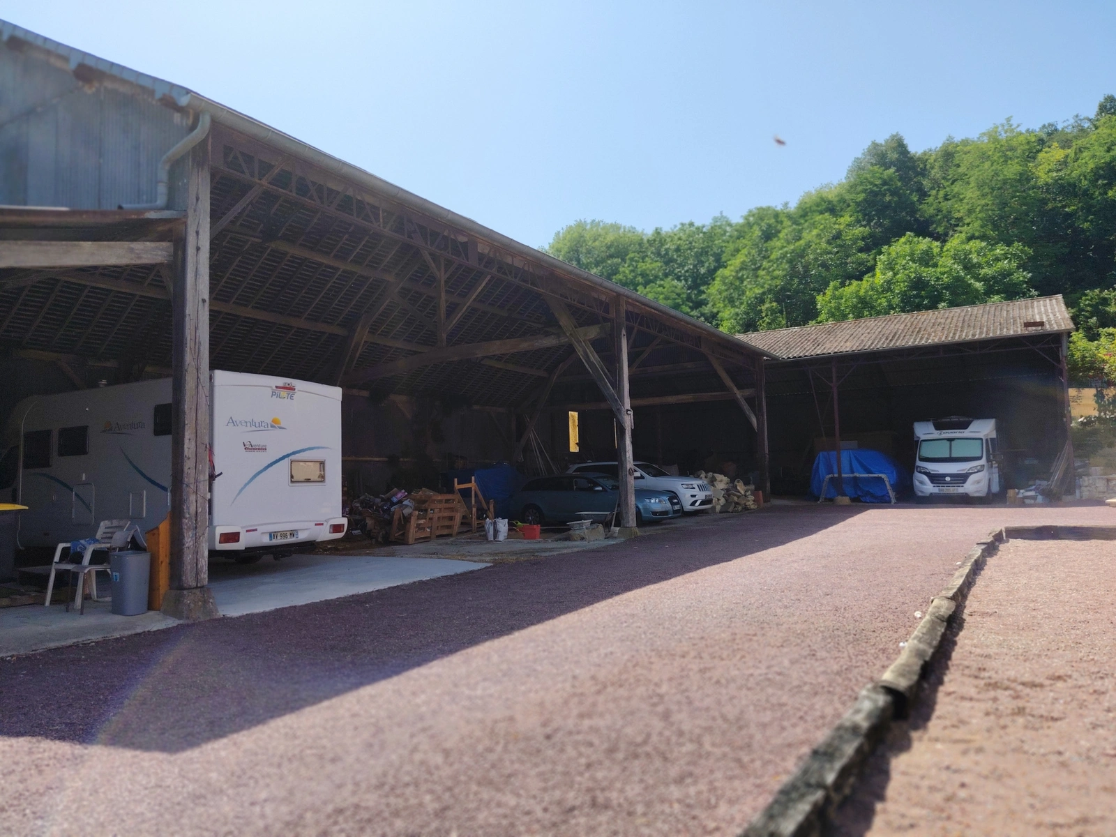 - Grand hangar de 350 m2 avec hauteur adaptée aux camping cars