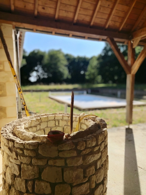Deux pièces de vie, dont une ouvrant sur la terrasse avec puits en pierre
